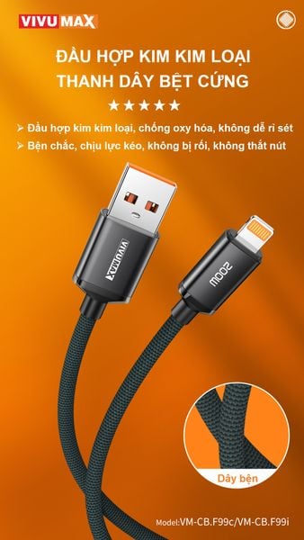 Cáp dù sạc nhanh 200W 6A Vivumax F99c Type-C