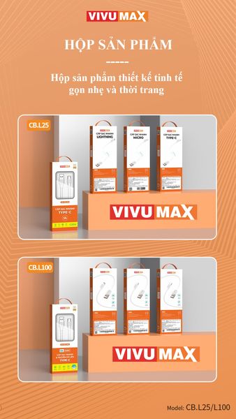 Cáp sạc nhanh 5A Vivumax L25c đầu Type C dài 25cm có thiết kế nhỏ gọn và bền bỉ