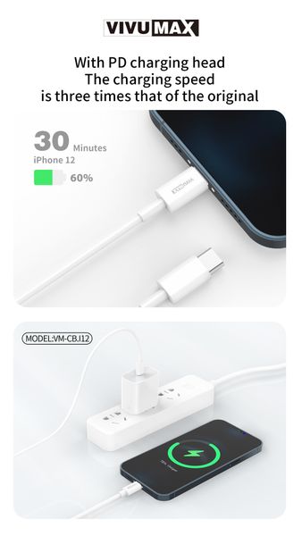 Tốc độ sạc nhanh của Vivumax I12 (Type C to Lightning) rất đáng để quan tâm: