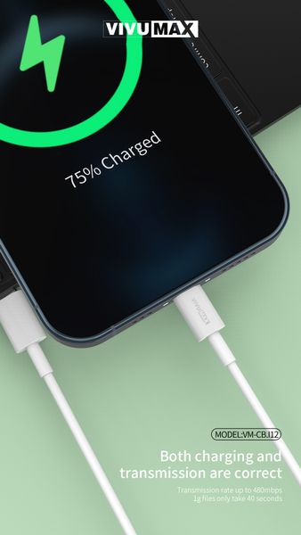 Đồng bộ kết nối của cáp kết nối iPhone Vivumax I12 Type C to Lightning: Sử dụng chuẩn kết nối lightning để phù hợp với tất cả các dòng sản phẩm hiện có của Apple trên thị trường hiện nay. Vivumax I12 (Type C to Lightning) ngoài sạc nhanh ra còn truyền dữ liệu truyền dữ liệu rất nhanh.