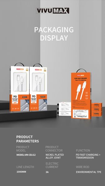 Đặc điểm nổi bật Cáp sạc nhanh và truyền dữ liệu chuẩn Apple Vivumax I12 (Type C to Lightning):