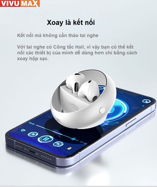 Tai nghe Bluetooth Vivumax VX5 có ngăn sạc xoay sáng tạo