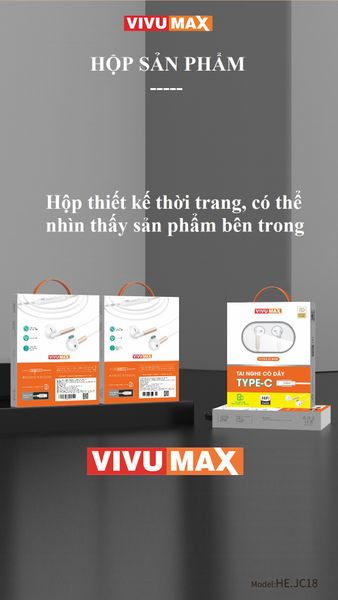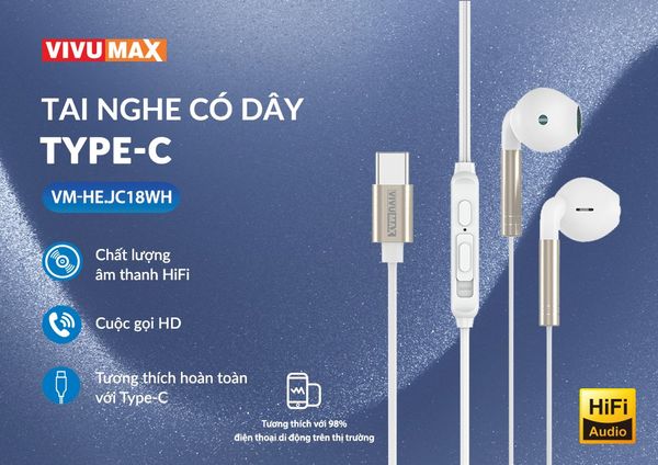 Tai nghe có dây chân Type C Vivumax JC18 tương thích các thiết bị có cổng Type C