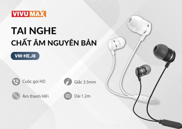 - Tai nghe Vivumax J8: dây dài 1,2m